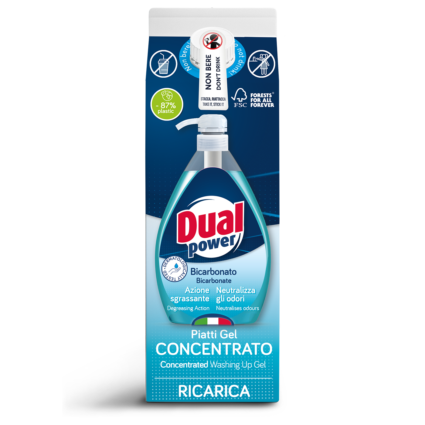 La soluzione intelligente e sostenibile per non restare mai senza il tuo detergente piatti preferito. Dual Power Ricarica Piatti Gel Concentrato Bicarbonato: abbina la praticità della ricarica al potere naturale del bicarbonato per una pulizia impeccabile delle tue stoviglie!