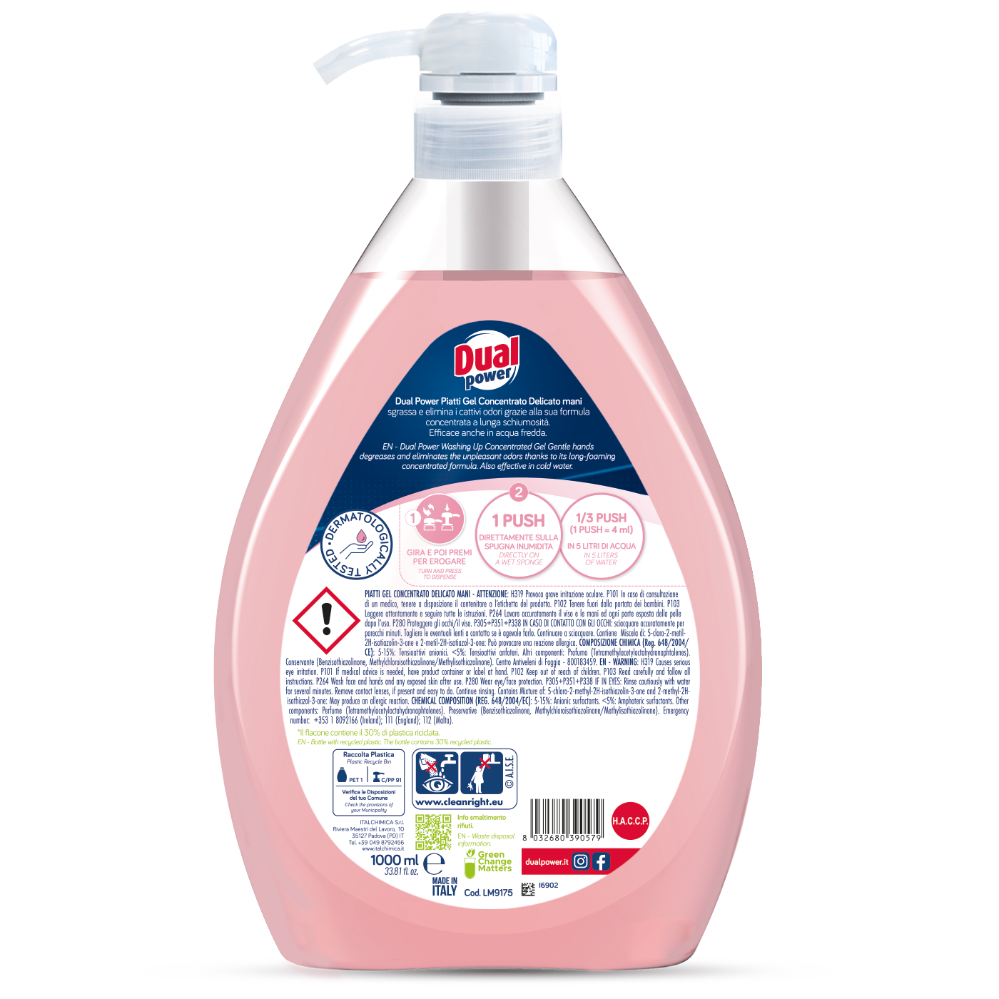 Dual Power Gentle Concentrated Washing Up Gel is specially formulated to be gentle on hands but tough on dirt, even in cold water.